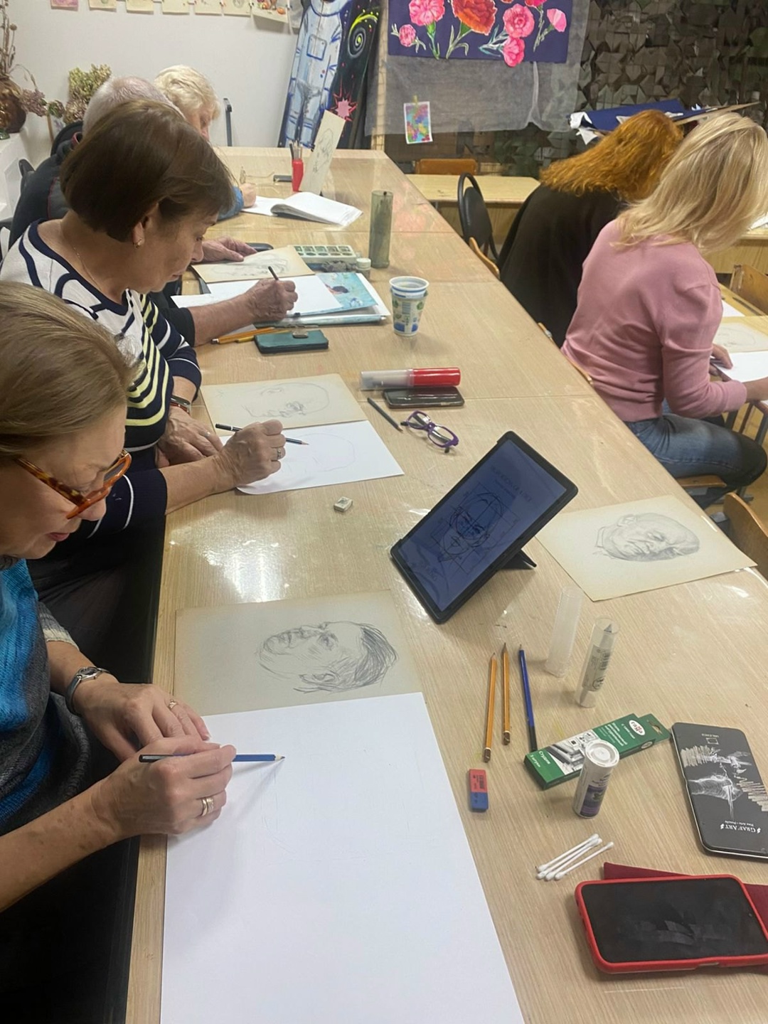 03.10.2025 г. мастер-класс по рисованию портрета2 октября мы провели мастер-класс по рисованию портрета в честь "Дня пожилого человека". Участники изучали пропорции головы человека на примерах рисунков старых мастеров( Альбрехта Дюрера, Леонардо да Винчи, Рафаэля Санти), копировали наброски художника Сергея Смирнова и выполнили рисунки с натуры! Было очень познавательно и интересно!